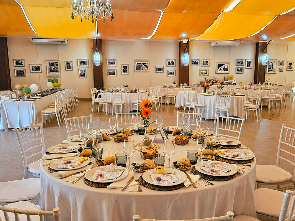 Este salón también puede ser compartido en eventos similares, con unos separadores apropiados que le dan un dinamismo.